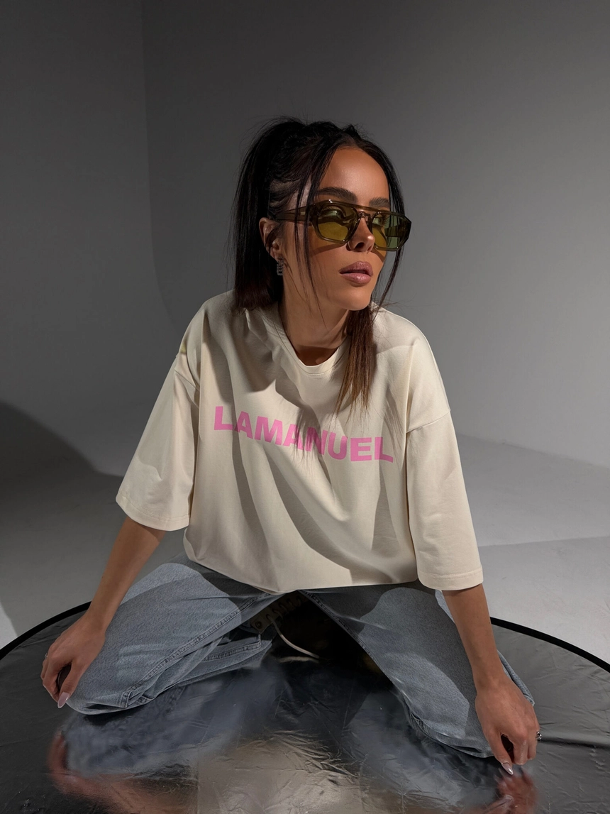 Oversize’owy t-shirt o luźnym kroju z wyraźnie opuszczoną linią ramion i szerokim rękawem. Na przodzie nadrukowane logo lamanuel, które przyciąga uwagę i nadaje charakteru. Uniwersalny fason unisex sprawdzi się w stylizacjach streetowych, sportowych i casualowych. Idealny do noszenia solo lub warstwowo – zawsze robi wrażenie bez wysiłku.Skład: 100% bawełna