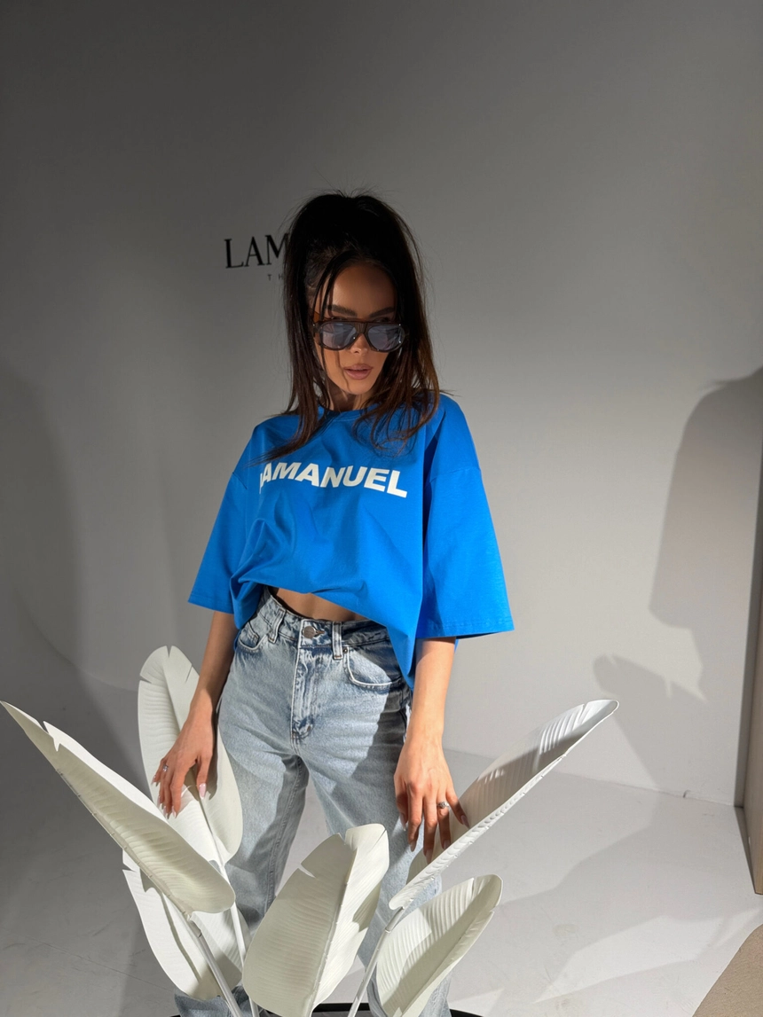 Oversize’owy t-shirt o luźnym kroju z wyraźnie opuszczoną linią ramion i szerokim rękawem. Na przodzie nadrukowane logo lamanuel, które przyciąga uwagę i nadaje charakteru. Uniwersalny fason unisex sprawdzi się w stylizacjach streetowych, sportowych i casualowych. Idealny do noszenia solo lub warstwowo – zawsze robi wrażenie bez wysiłku.Skład: 100% bawełna