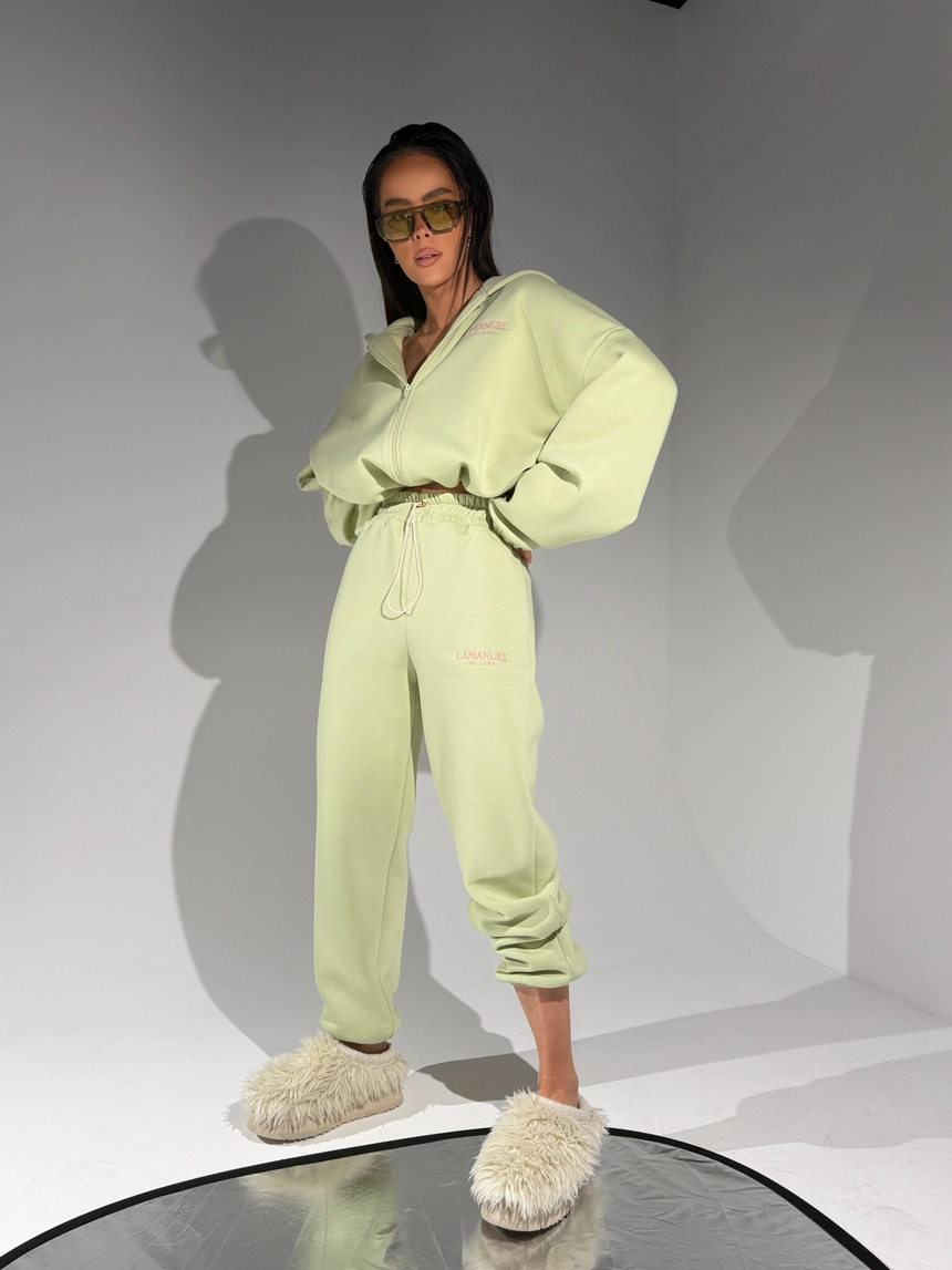 Kultowy krój dresów z wysokim stanem i regulacją w pasie wraca w nowej, wiosennej wersji kolorystycznej. Ten sam miękki materiał, te same idealne proporcje, ta sama wygoda. Logo LAMANUEL w formie haftu podkreśla jakość, a dopasowane detale sprawiają, że to must-have na nowy sezon.Skład: 90% bawełna 10% poliester