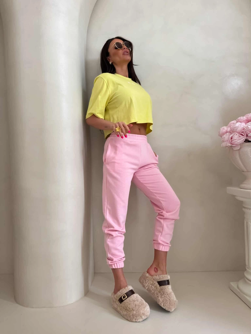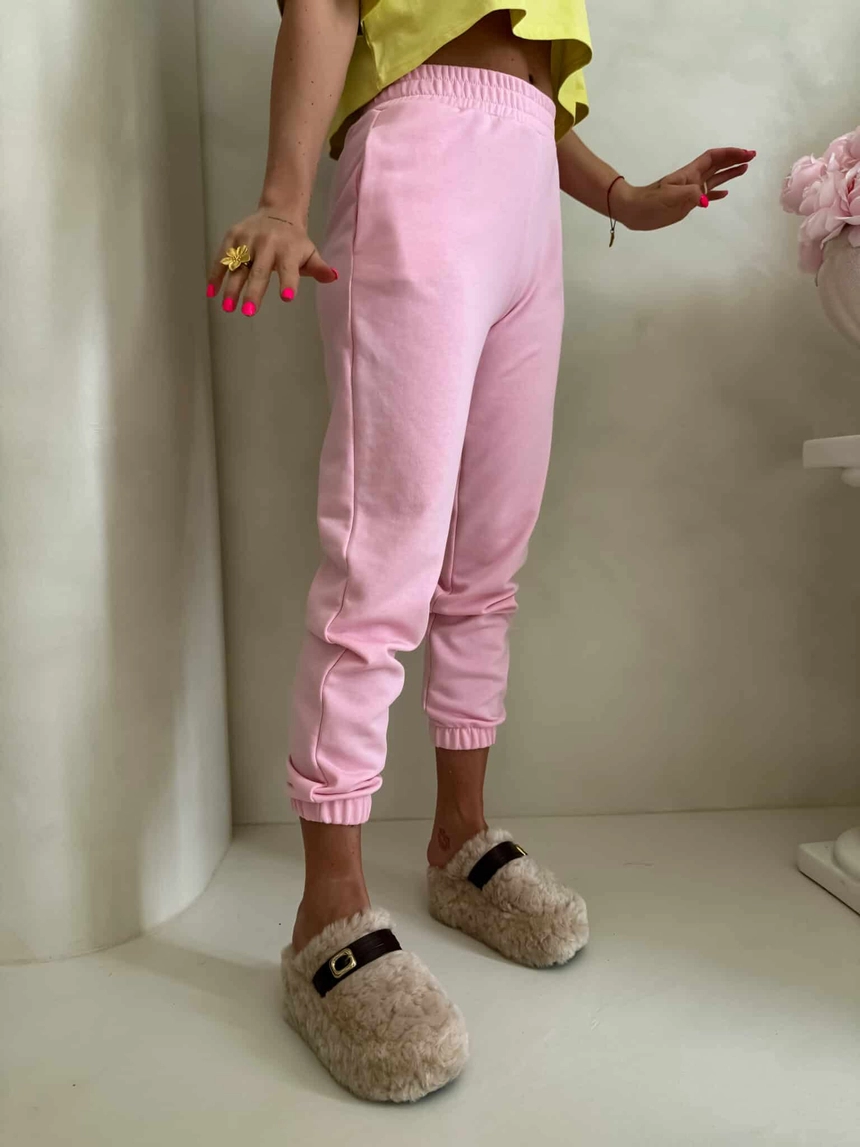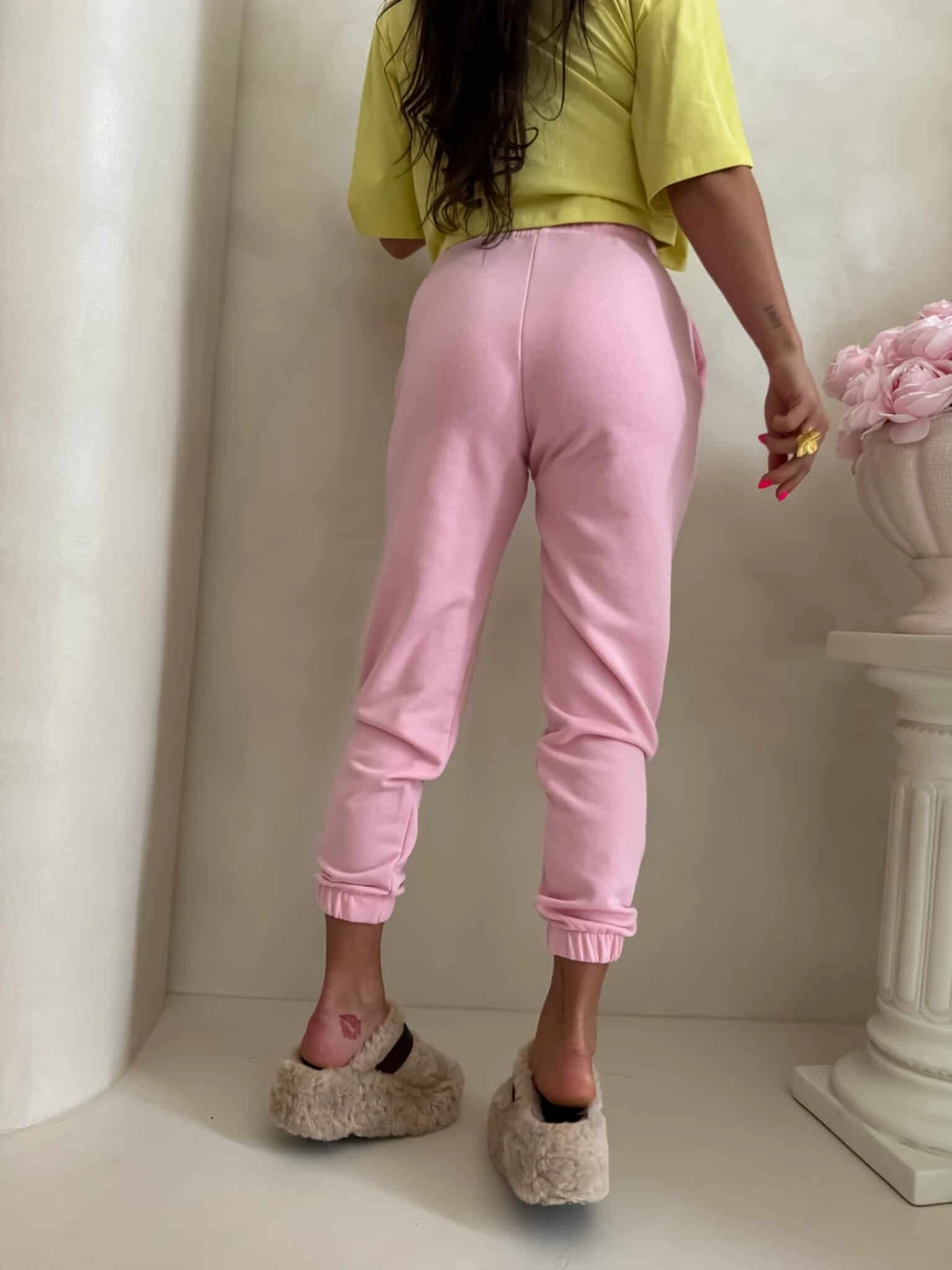 Spodnie dresowe – dopasowane, z elastycznym pasem w talii i ściągaczami na dole nogawek. Ich krój podkreśla sylwetkę, zachowując jednocześnie pełną swobodę ruchów.