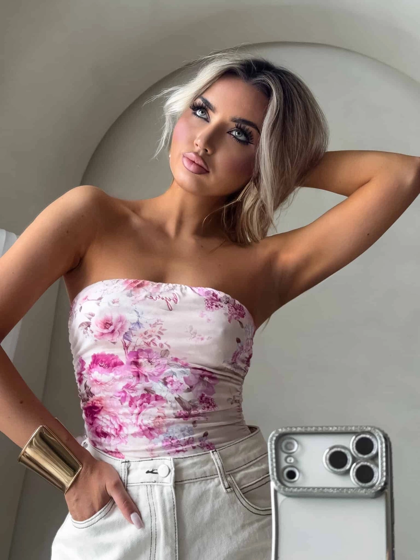 Top logowany bez ramiączek to idealna baza do wielu stylizacji – od codziennych po wieczorowe. Wykonany z elastycznego, idealnie dopasowującego się materiału, gwarantuje komfort noszenia i świetne dopasowanie do sylwetki. Top posiada podwójną warstwę materiału, co zapewnia lepsze krycie i trwałość, a subtelne marszczenia po bokach i z tyłu dodają mu charakteru i delikatnie modelują figurę. Uniwersalny krój sprawia, że będzie świetnie wyglądać zarówno solo, jak i w połączeniu z marynarką czy oversize'ową koszulą.